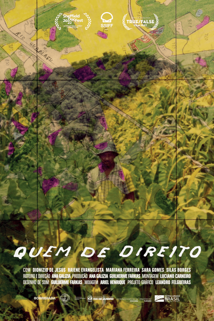 “a luta popular pela terra é uma constante no vale do guapiaçu (cachoeiras de macacu – rio de janeiro) e nesse sentido é importante delimitar o território coletivamente, a partir de uma cartografia definida que represente o estado atual da terra, os rios e seus arredores. ‘quem de direito’ é um filme que reforça a vitalidade de um território vítima do processo de colonização, bem como da insistente retomada das terras para a construção de uma barragem. nesse sentido, a voz do coletivo popular reflete sobre o presente e o passado, fazendo da cartografia um redesenho da memória em prol da luta dos trabalhadores pela terra livre, agora somada ao direito à água.”