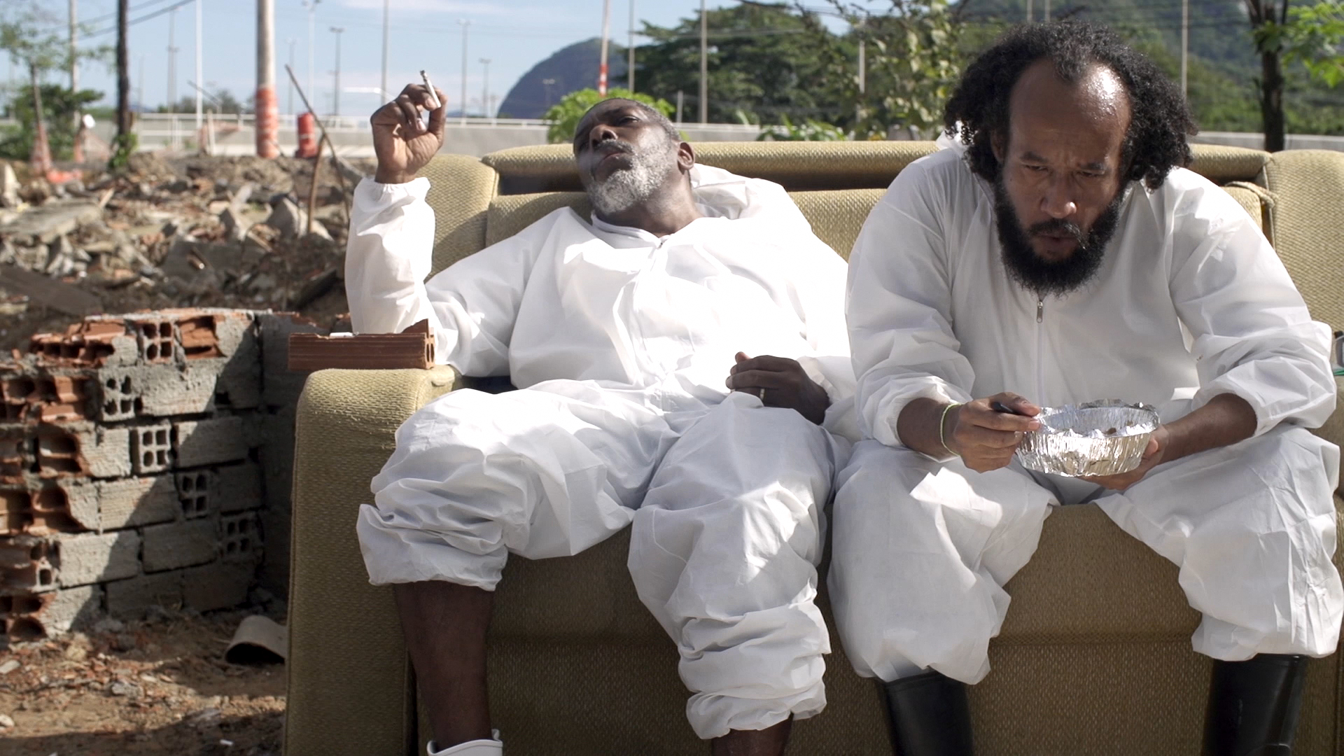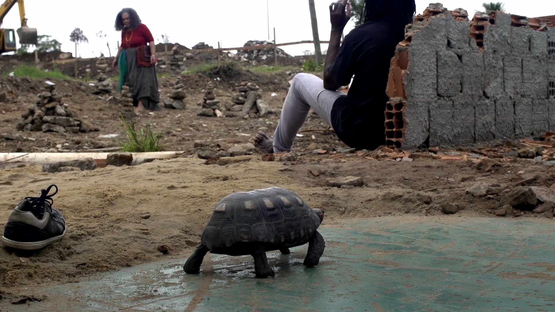 após a demolição das casas e ruas, restaram os corpos ou a vida em pedaços. ali, uma garota arrumou-se para uma festa, uma senhora rezou, uma filha dobrou camisas, um casal contou estrelas, um rapaz saltou de bicicleta, outro dançou com seu jabuti. filme gravado na vila autódromo, comunidade que resistiu à devastação no rio, em 2016.